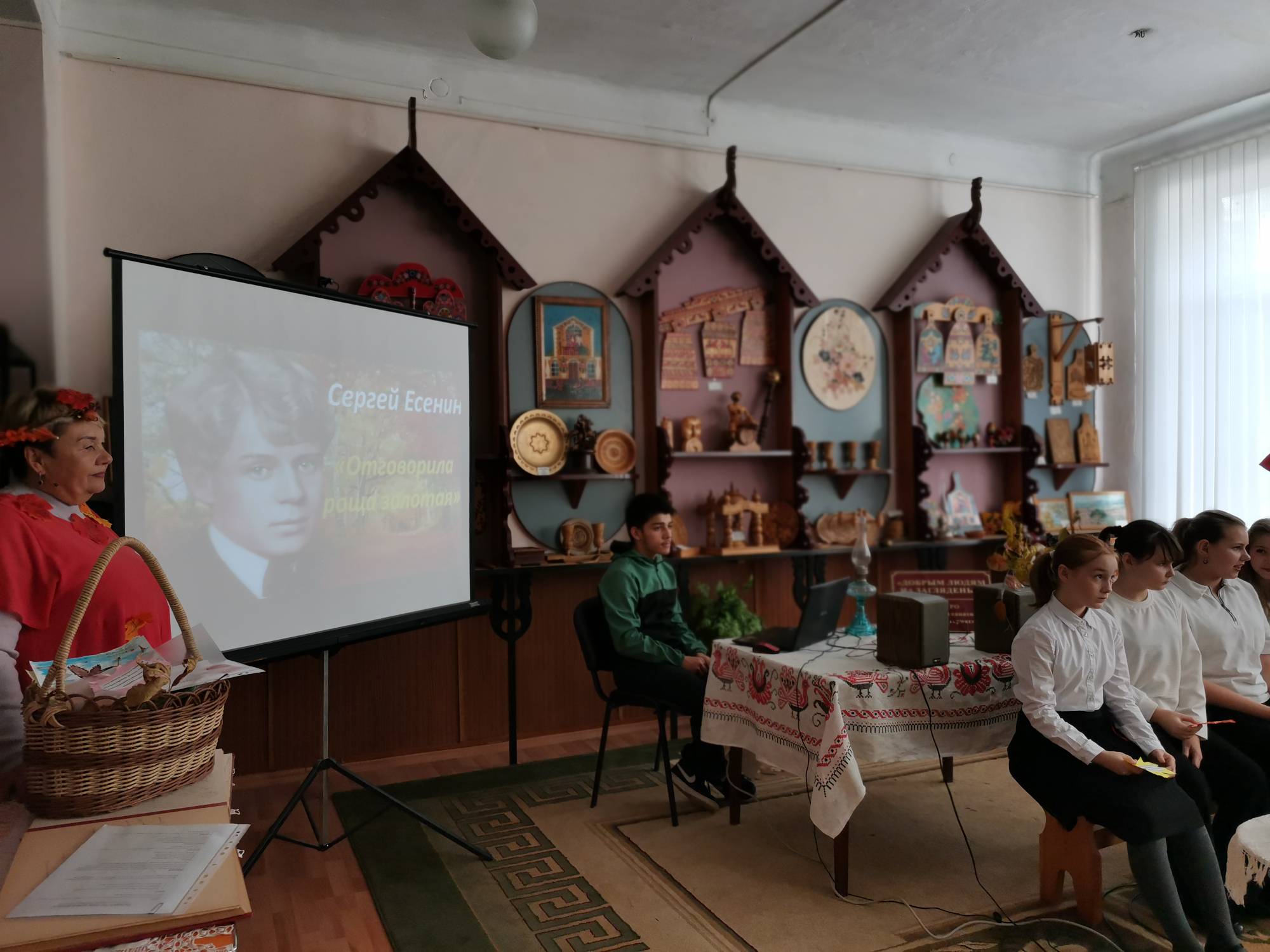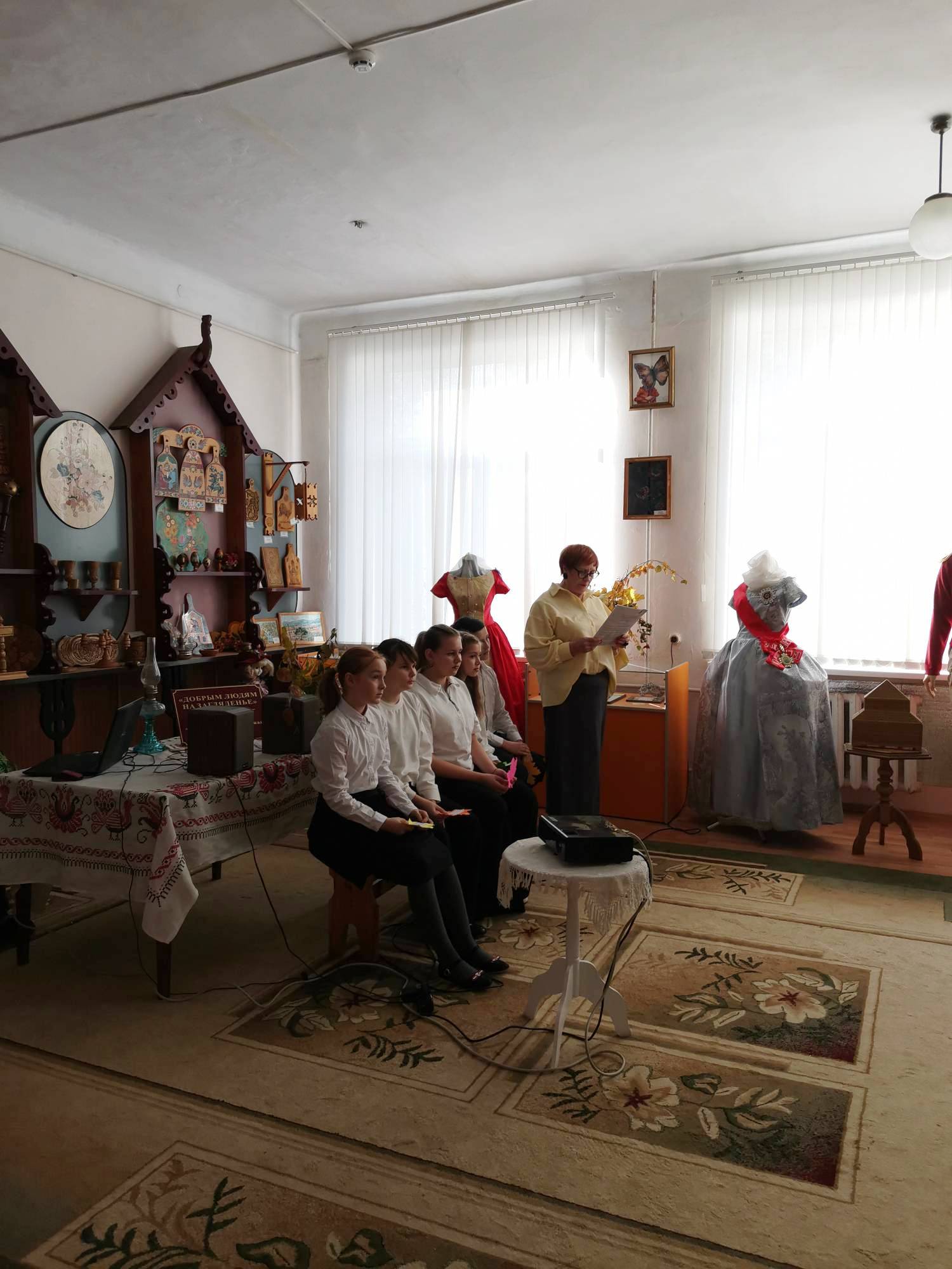 Учитель русского языка и литературы Архипенко Е.А. ежегодно проводит в школьном музее уроки литературы. Так, в 5 классе, был дан урок «Волшебные сказки», в ходе которого ребята слушали рассказ учителя, искали волшебные предметы среди экспонатов музея, отвечали на вопросы, инсценировали отрывки из сказок. Урок прошел очень интересно и познавательно.