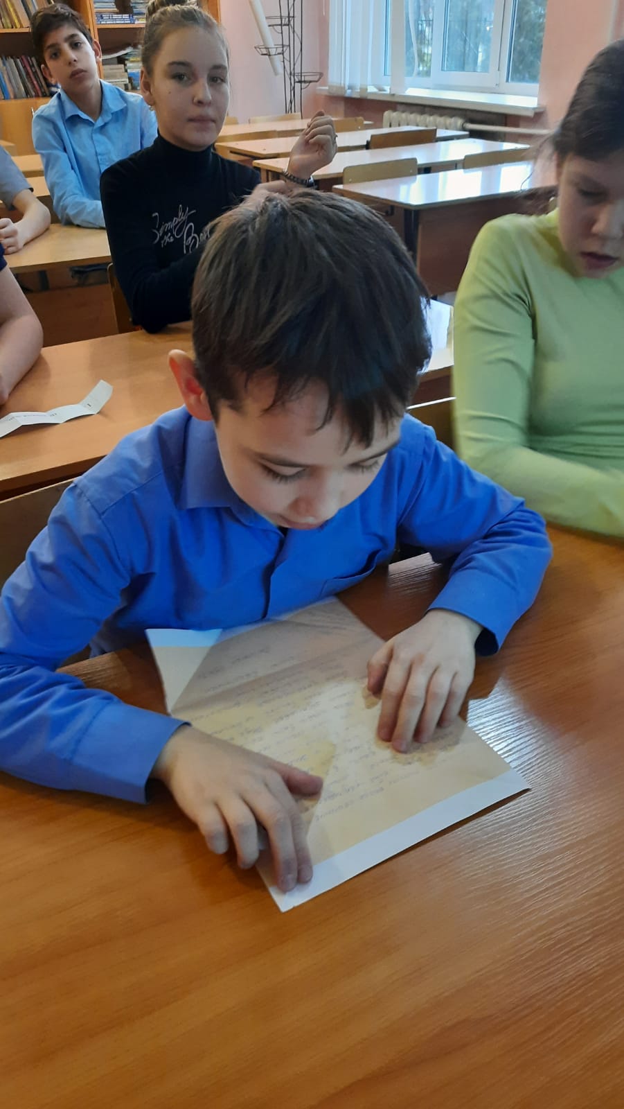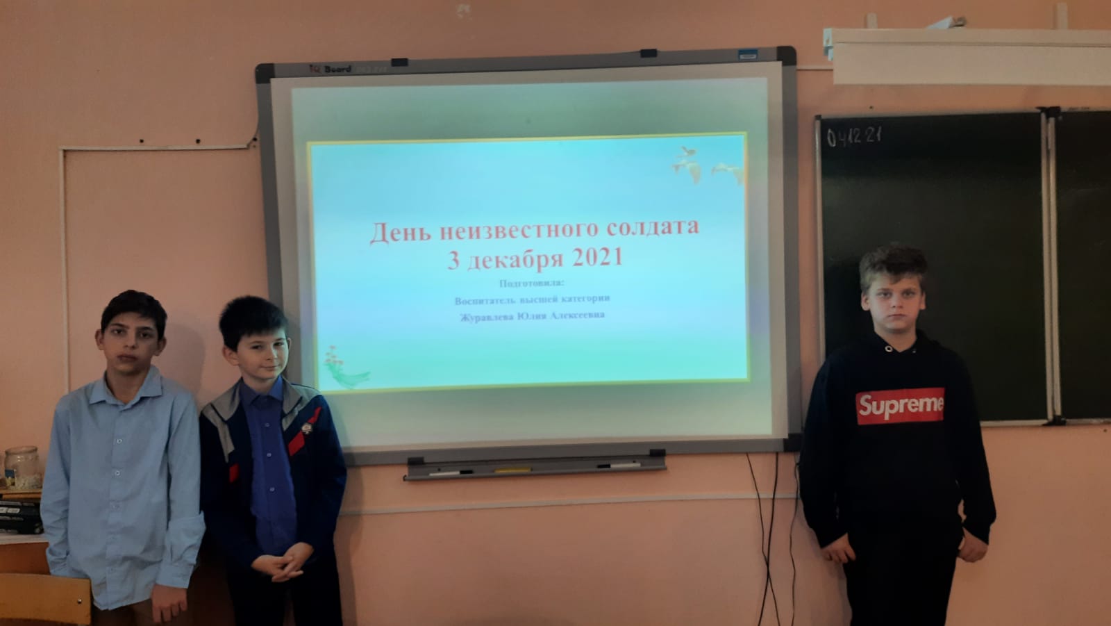 3 декабря 2021 года в ГКОУ РО «Ростовская-на-Дону санаторная школа-интернат № 74» Таганрогский филиал классным руководителем 5 класса Журавлёвой Ю.А. был проведен классный час «День неизвестного солдата». Ребята с интересом знакомились с памятниками России и Ростовской области, в частности с письмами треугольниками (точные копии писем военных лет), картами боевых действий. После просмотренных видеороликов с большим воодушевлением выполняли задания.
