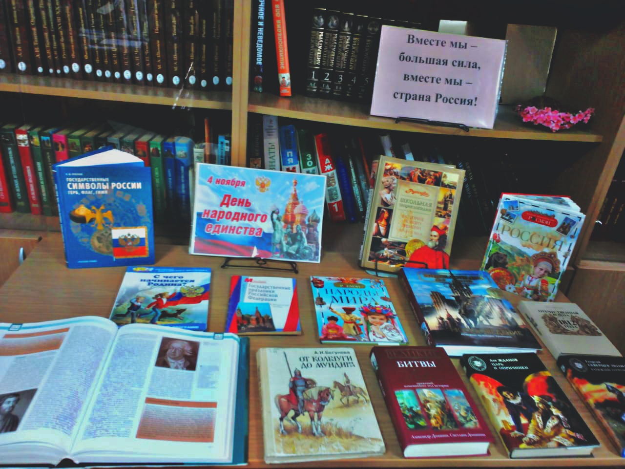 В ГКОУ РО «Ростовская-на-Дону санаторная школа-интернат №74» Таганрогский филиал в преддверии Дня народного единства была оформлена книжная выставка, посвященная этой дате «Вместе мы - большая сила, вместе мы – страна Россия». Историческая и художественная литература, представленная на выставке, носит информационный и просветительский характер. Обучающие узнали, как появился этот праздник и в память о каких событиях был он учрежден. Размещенная литература позволяет понять глубокий смысл этой даты, расскажет о том времени как об одном из серьезных испытаний для российского государства. Выставка будет работать до конца месяца.