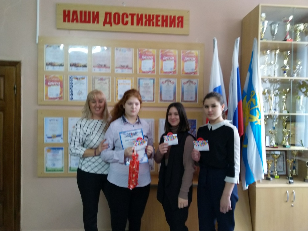 3 декабря 2020 года в ГКОУ РО «Ростовская-на-Дону санаторная школа-интернат № 74» Таганрогский филиал состоялось награждение участников и победителей международного конкурса «Герои в белом», проходившего по инициативе Международного клуба «Ротари Интернешнл». Наши ребята приняли активное участие в конкурсе рисунков, а ученица 9 класса Елизавета К. стала победителем. Председатель Попечительского совета Н.А. Сорокина вручила ребятам дипломы и именные подарки, а лучшим учащимся по итогам первой четверти – сертификаты магазина «Читай-город».