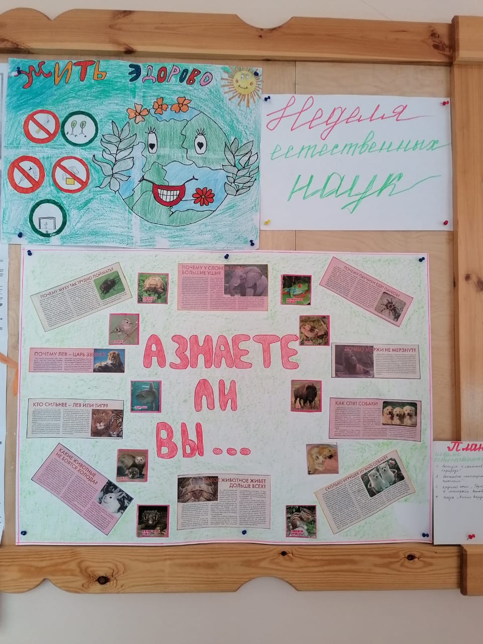 Учителем биологии и химии Орловой О.В. были подготовлены интересные задания для обучающихся. В эти дни ребята выпустили стенгазеты «Наши питомцы», приняли участие в выставке плакатов «Науки о природе», обсудили за круглым столом горные породы и минералы Ростовской области, а так же побеседовали о химии в нашей жизни. Учителем географии Сукач А.Л. были проведены: викторина «Мой любимый Таганрог»; показаны презентации «Цвети мой край – земля Донская», «Удивительные растения и животные»; оформлены стенды «Великие путешественники», «Семь чудес России», «Путешествие по материкам». Наиболее активными участниками стали Кандакова Лиза, Хулхачиева Юля, Сергеев Никита, Попова Алена, Илышева Нина, Бессчетная Сусанна.