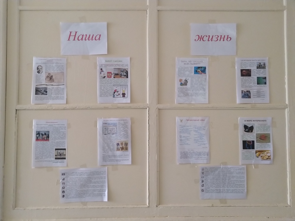 Выпущен первый номер газеты «Наша жизнь». Редакционная коллегия и корреспонденты стараются осветить как можно больше сфер жизни не только нашей школы, но и города, области и страны. Разнообразные темы позволяют охватить достаточно широкий круг читателей – различных по возрасту и интересам.