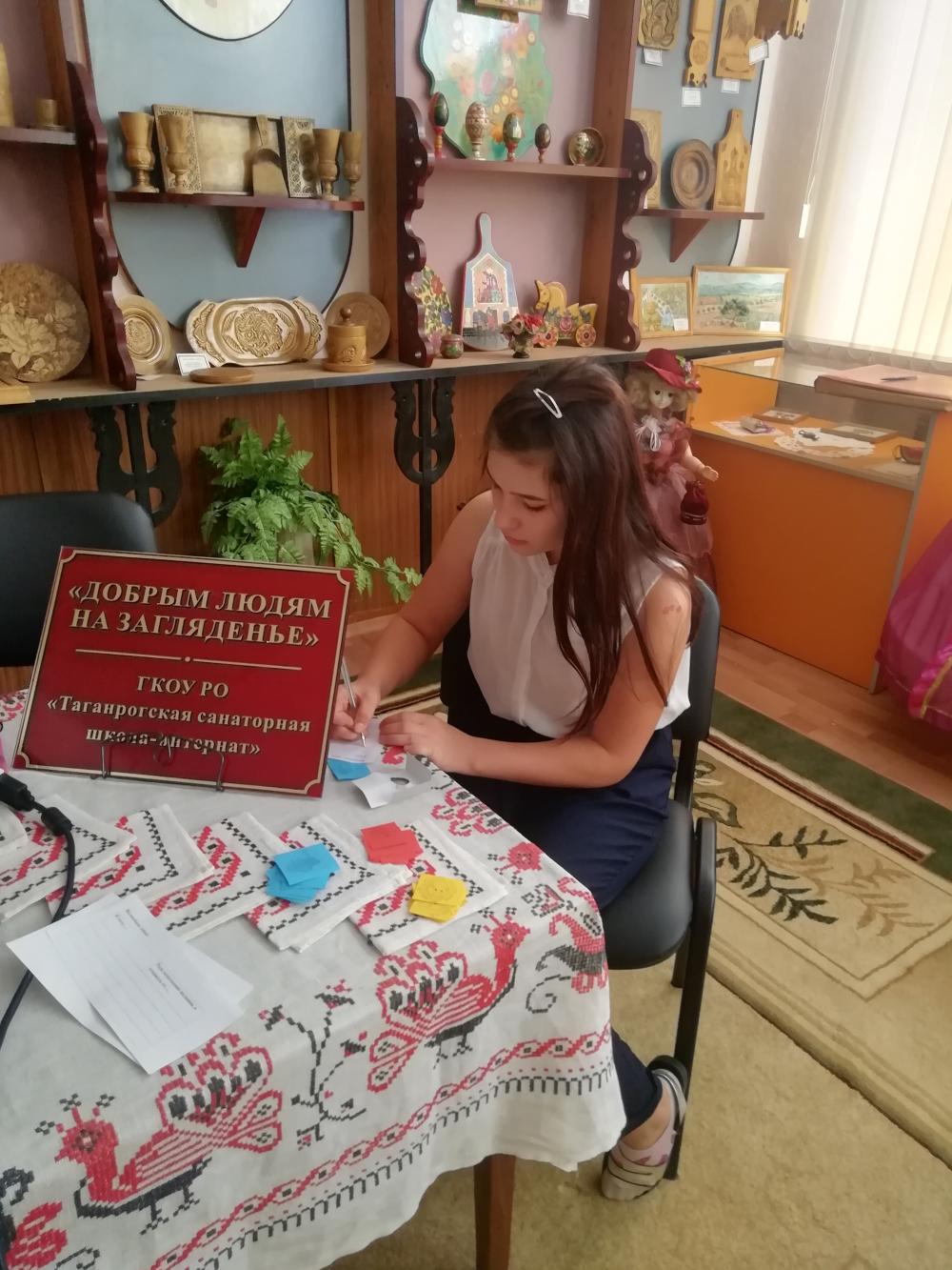 Обучающиеся ГКОУ РО “Таганрогская санаторная школа-интернат” присоединились к Всероссийской акции “Уроки Добра”. В рамках данной акции 05.11.2019 года проведен открытый урок «Создаем киришское кружево». Урок прошел в творческой активной обстановке. Вызвал много интереса у ребят и позволил взрослым оценить возможности учеников. В своей дальнейшей работе ребята будут применять полученный опыт данного занятия.