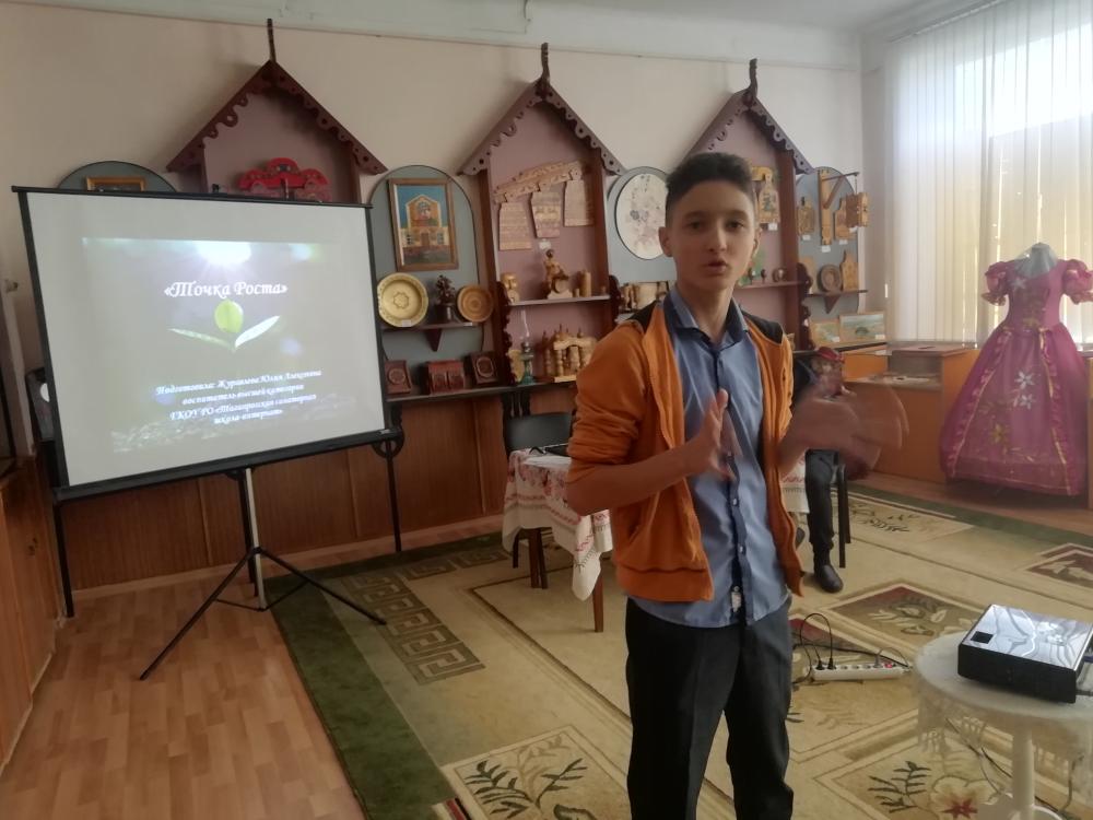 На базе школьного музея живописи и народных промыслов ГКОУ РО «Таганрогская санаторная школа-интернат» для воспитанников 1 отряда прошло мотивационное мероприятие "Точка роста". Воспитатель Журавлева Юлия Алексеевна познакомила детей с историями успеха известных бизнесменов, культурных деятелей и предпринимателей, а воспитанники попытались научиться ставить цель и строить планы для ее достижения.