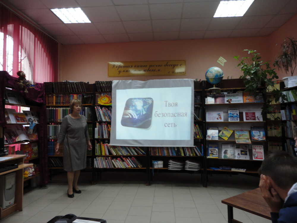 8 октября 2019 года, в рамках Всероссийского единого урока по безопасности детей в сети Интернет, учащиеся 8-9 класса ГКОУ РО «Таганрогская санаторная школа-интернат» вместе с педагогом- библиотекарем Яровенко В.М. были приглашены на информационный час «Твоя безопасная сеть» в библиотеку им. А.П.Гайдара.