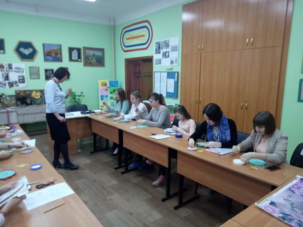 После теоретической части для молодых специалистов были организованны экскурсии по школе, картинной галерее, музею живописи и народных промыслов школы-интерната и проведены мастер-классы по направлениям внеурочной деятельности. Мастер-классы вызвали живой интерес. Каждый участник получил в подарок изделие, созданное своими руками.