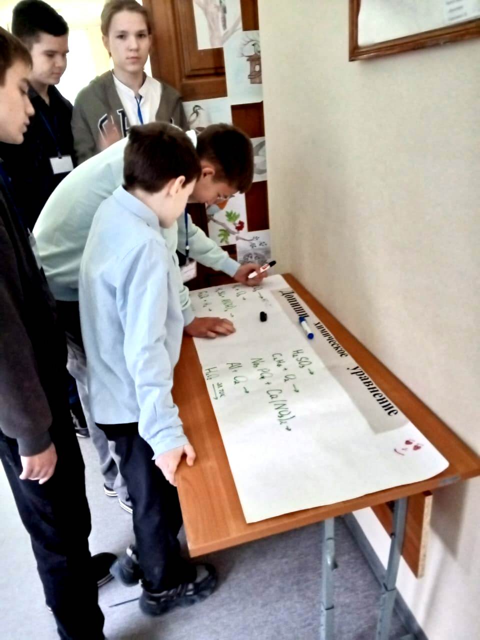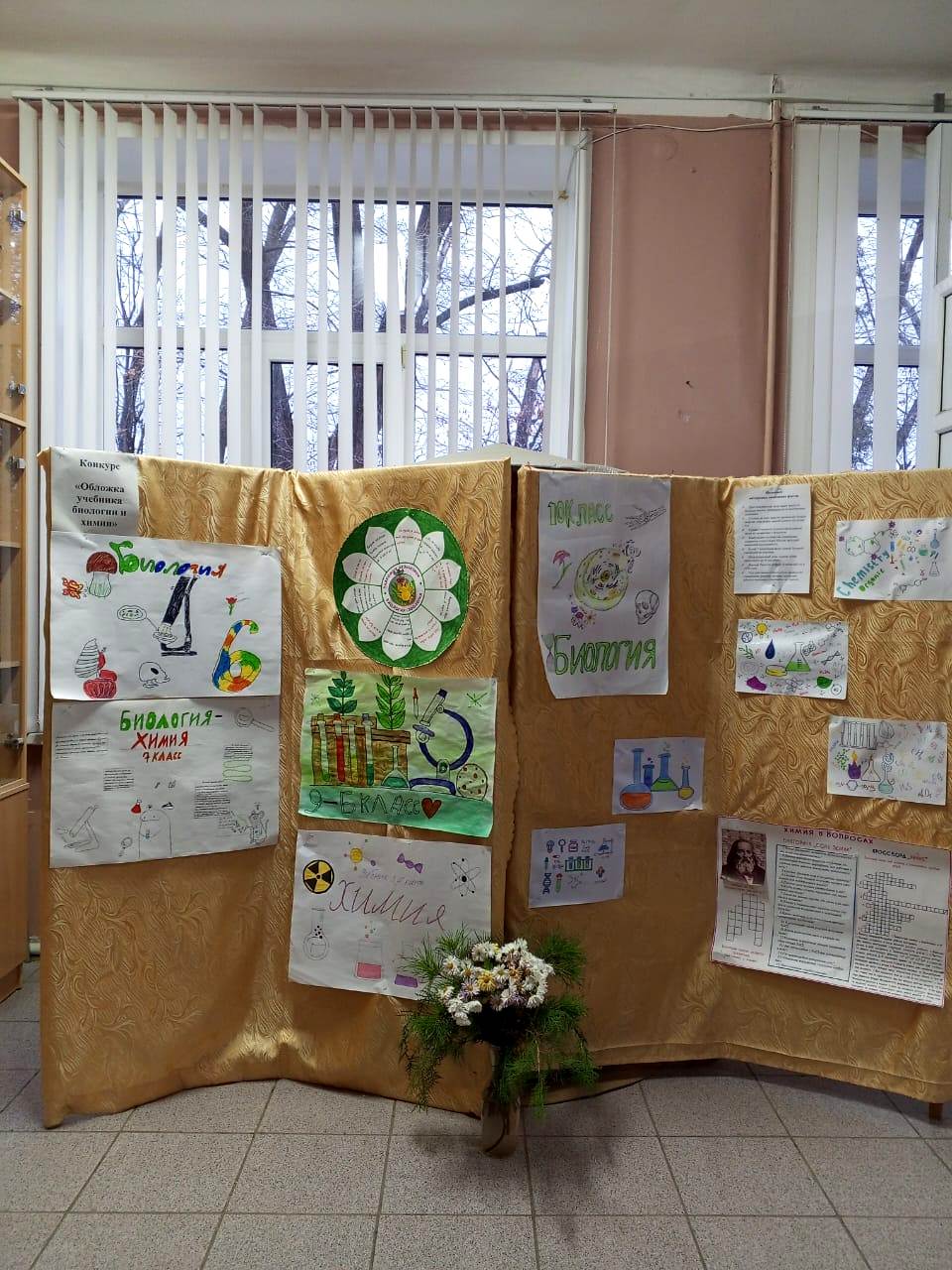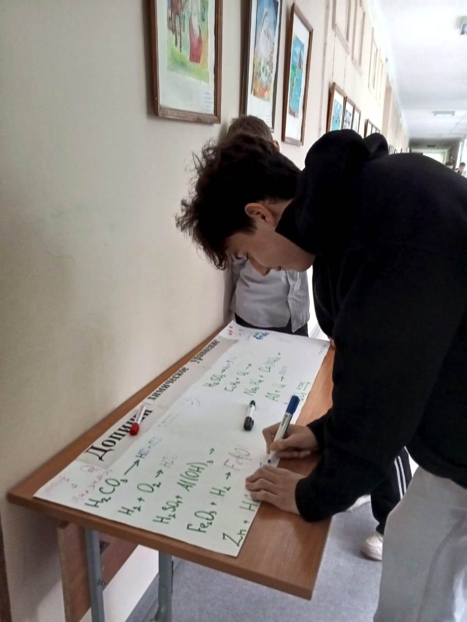 На переменах все с интересом пытались дописать химические уравнения, а также 5-11 классы придумывали свои эскизы для конкурса «Обложка учебника биологии и химии".