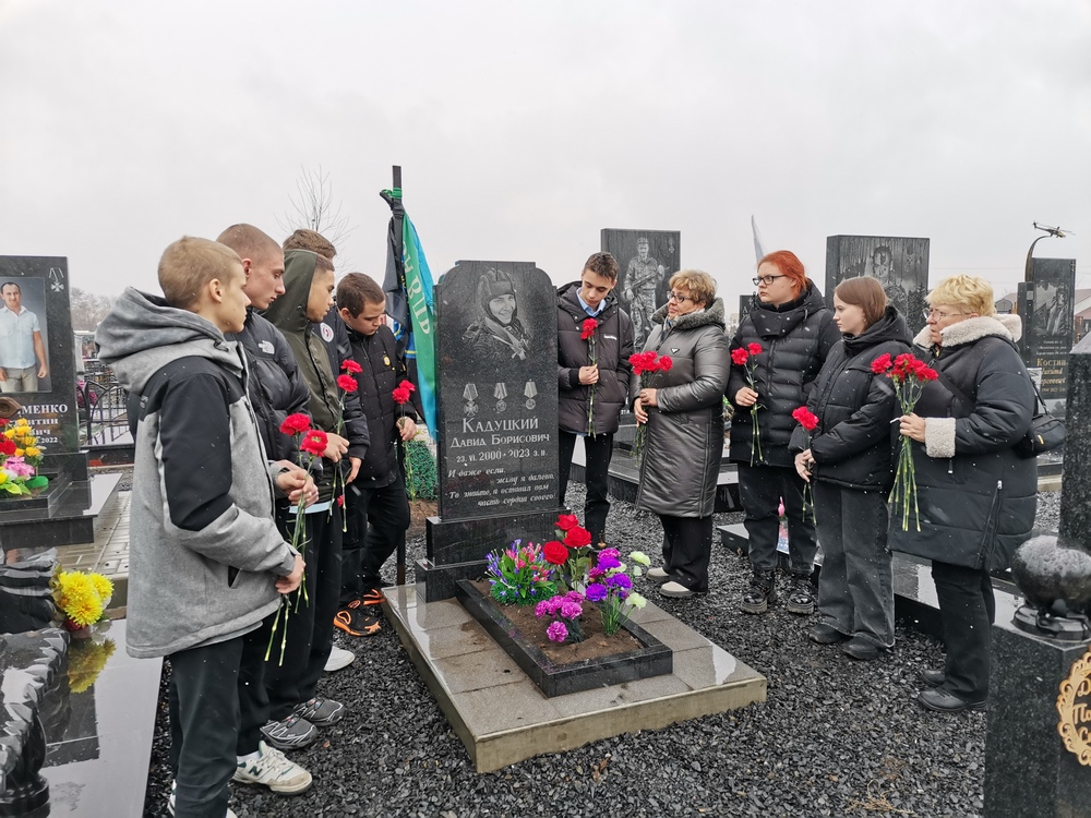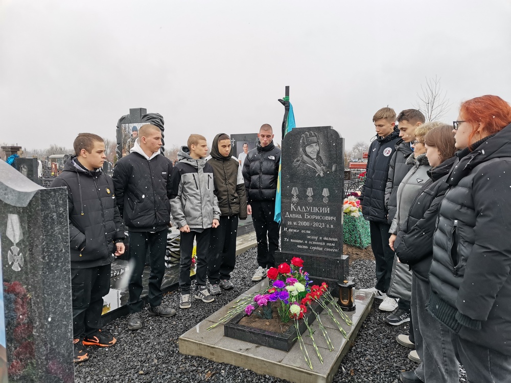 Каждый год 3 февраля, возлагая цветы на его могилу, мы будем отдавать дань уважения и чтить подвиг нашего выпускника Кадуцкого Давида. Вечная Слава Герою!