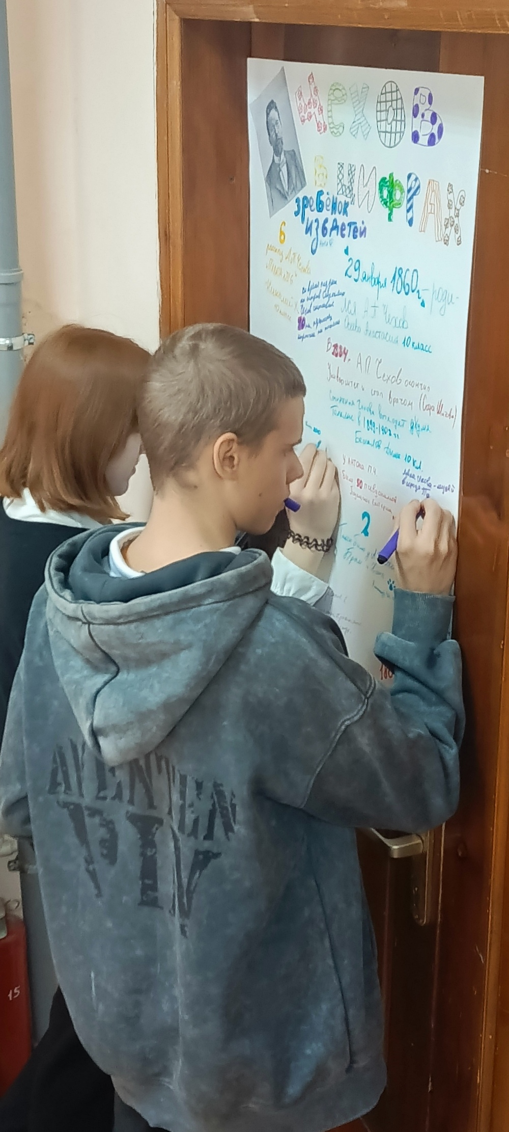 Так же Еленой Алексеевной Архипенко были подготовлены лекторы из числа учеников 9 класса (Степаненко Никита и Свергун Арсений), которые провели для ребят 5,6,7,8 классов лекторий, в котором рассказали об интересных и мало известных фактах жизни Антона Павловича Чехова.