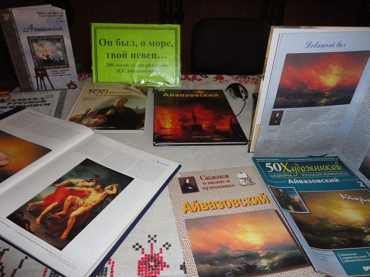 31 октября 2017 года в ГКОУ РО «Таганрогская санаторная школа-интернат» для учащихся 6-7 классов прошел музейный час «Он был, о море, твой певец!», посвященный 200-летию со дня рождения И.К. Айвазовского. Совет школьного музея и руководитель музея Н.В. Фролова подобрали интересный материал о жизни и творчестве великого мариниста. Педагог-библиотекарь В.М. Яровенко подготовила для ребят книжную выставку и провела викторину.