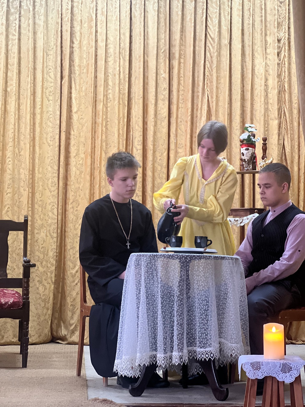 3 апреля 2025 года в Таганрогском филиале ГУКОУ РО «Ростовская-на-Дону санаторная школа-интернат № 74» в семнадцатый раз состоялось открытие театрального сезона. В год 165-летия со дня рождения нашего великого земляка Студия театральных миниатюр «Подмостки» (руководитель Фролова Н.В.) подготовила театральные зарисовки «Весёлый грустный Чехов», куда вошли рассказы Антона Павловича «Размазня», «Ушла», «Лошадиная фамилия», «Хирургия», «Мальчики» и «Умный дворник». Для многих участников спектакля этот выход на сцену был дебютным, а значит волнительным и запоминающимся. Благодарные зрители наградили юных актеров аплодисментами, а попечительских совет подарил участникам билеты на премьерный спектакль «Онегин» в Таганрогский драматический театр им.А.П. Чехова.